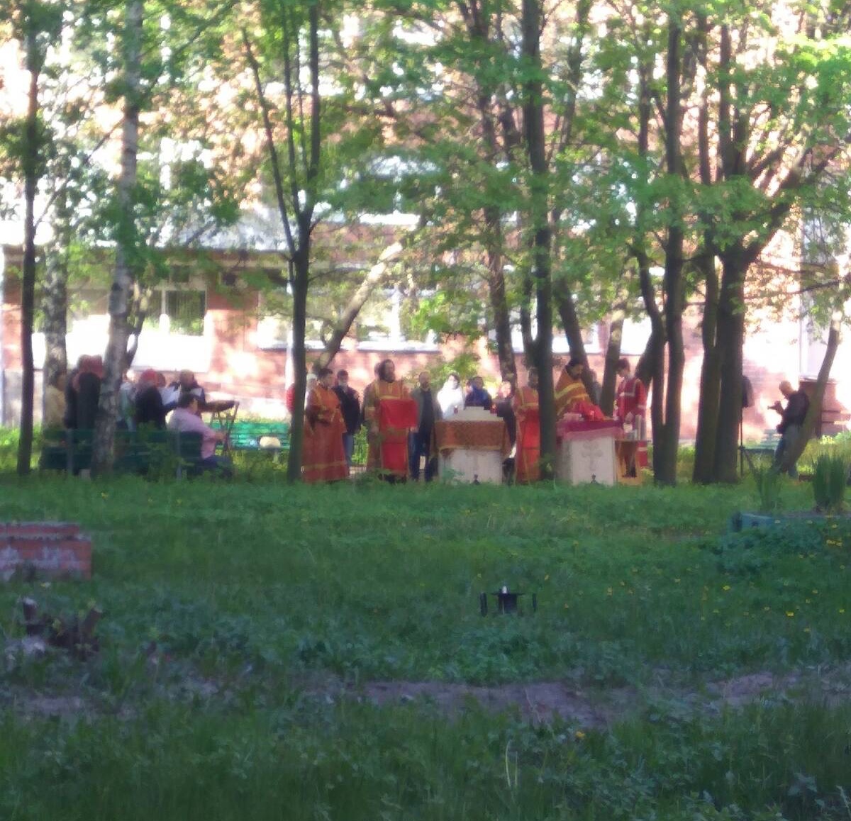 Утром 27 мая на территории Покровской больницы в Петербурге прошло богослужение. Фотографии опубликовал анестезиолог-реаниматолог Сергей Саяпин, переболевший коронавирусом.