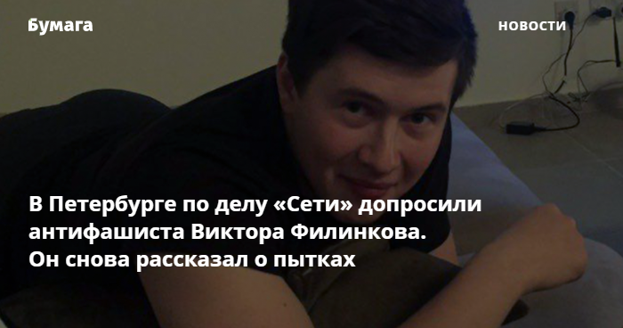 Филинков снова рассказал о пытках со стороны правоохранительных органов. Он сообщил, что в машине его ударили по голове и били током. Ранее фигуранты дела «Сети», в том числе и Виктор, уже говорили о пытках, по этой причине тысячи общественных деятелей требовали пересмотра приговоров осужденных.
