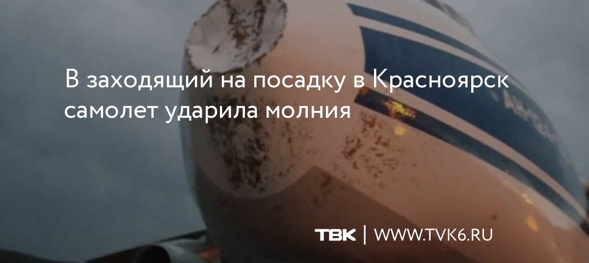 Грузовой самолет Ан-124-100 повредило ударом молнии, когда он заходил на посадку в аэропорт Красноярск. Все произошло вечером 26 мая во время грозы.