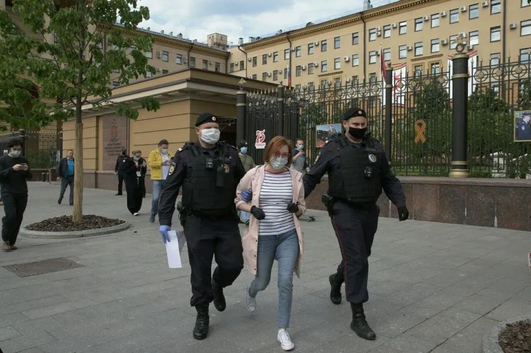 Журналистка «Эха Москвы» Татьяна Фельгенгауэр второй встала в пикет, и ее сразу же сопроводили в автозак. Журналиста «Эха Москвы» Александра Плющева тоже задержали. Задержанных доставляют в ОВД Тверской. Сотрудник полиции заявил корреспондентке «Новой», что любые публичные мероприятия сегодня незаконны, поскольку нарушают режим самоизоляции в Москве.