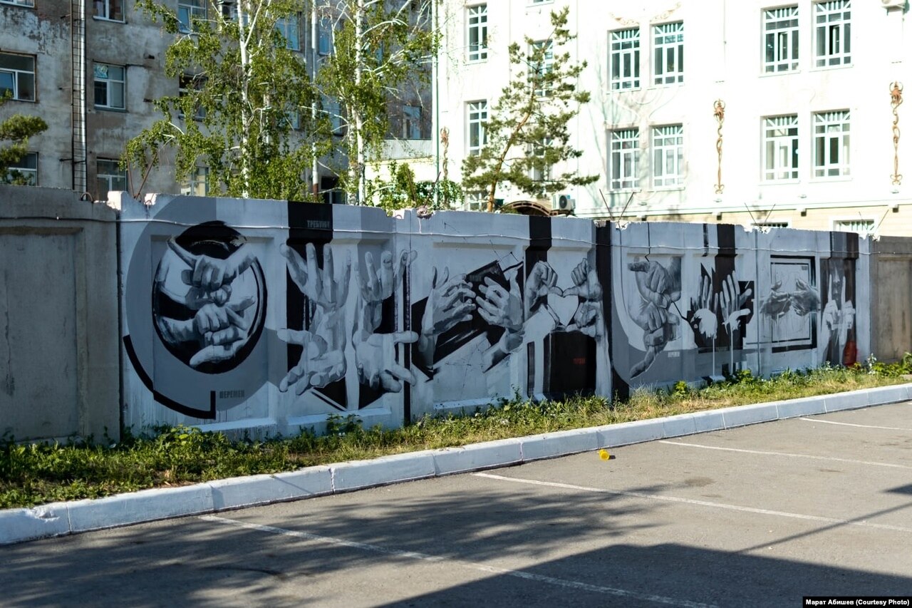 Омск: художники создали граффити по песне Цоя на языке жестов