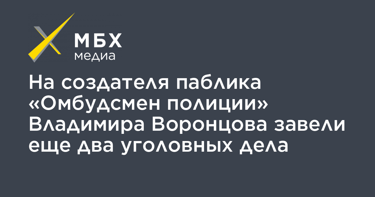 На создателя паблика «Омбудсмен полиции» Владимира Воронцова завели еще два уголовных дела