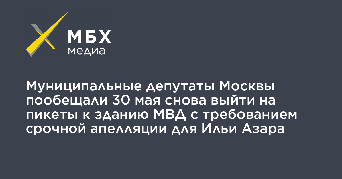 Муниципальные депутаты Москвы пообещали 30 мая снова выйти на пикеты к зданию МВД с требованием срочной апелляции для Ильи Азара