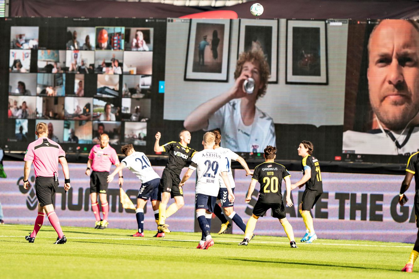 Европейские чемпионаты по футболу возобновляются. Уже идет чемпионат Германии, скоро возобновятся игры в испанской Ла Лиге (11 июня), английской премьер-лиге (17 июня), итальянской Серии А (20 июня) и российской премьер-лиге (21 июня). В Дании матчи возобновились вчера. Пока они проходят без зрителей, но руководство футбольного клуба «Орхус» придумало, как решить проблему. Болельщики поддерживают команду через Zoom.