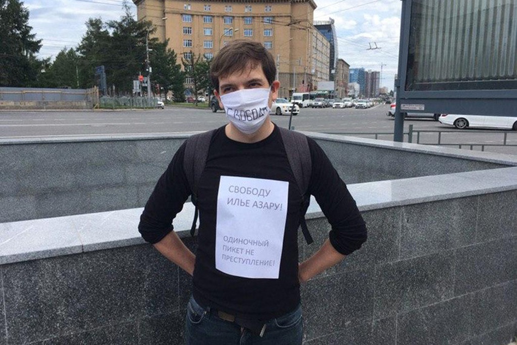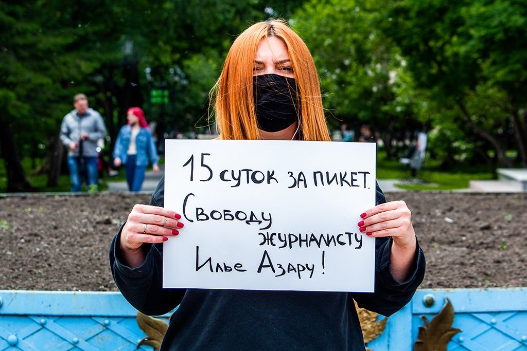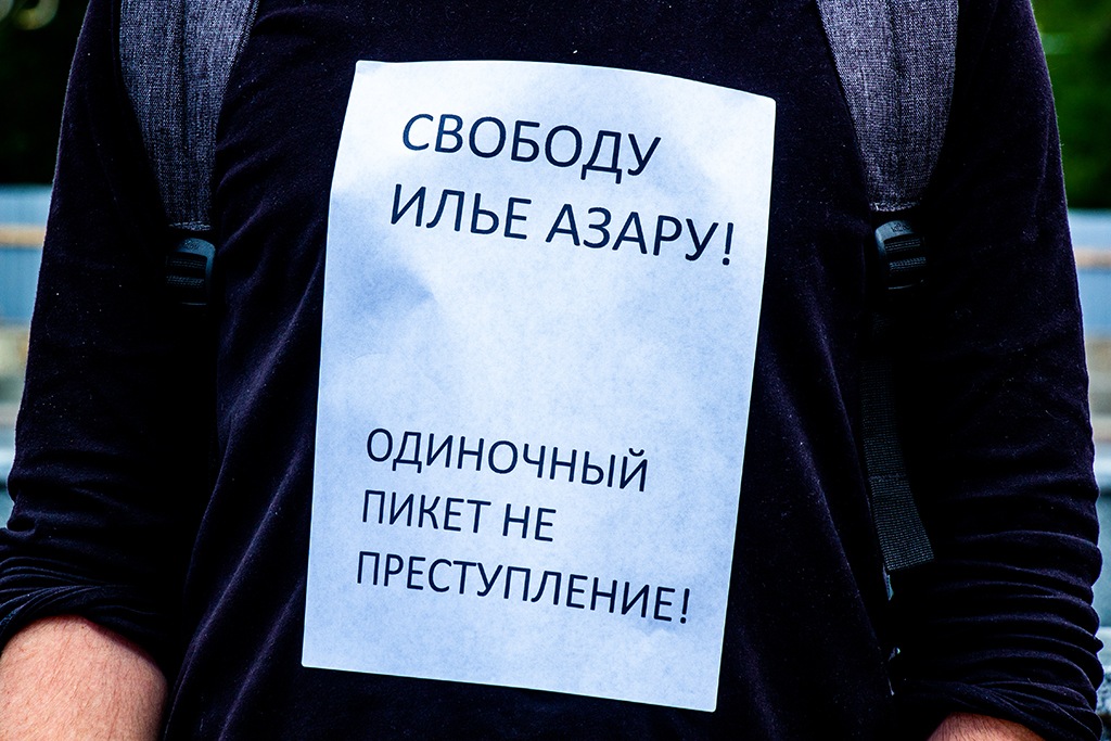Одиночные пикеты в поддержку московского журналиста Ильи Азара проходят в Новосибирске