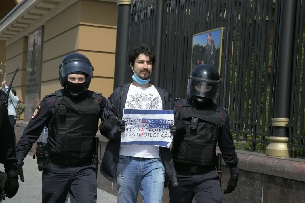 13:44 & Задержали& задержали муниципального депутата Наталью Ремезову, которая встала в пикет с плакатом «Свободу Илье Азару», передает «ОВД-Инфо».&15:06 Задержан & активист Леонид& Драбкин.