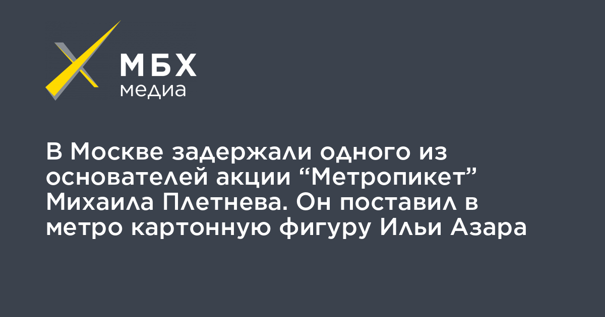 В московском метро задержали одного из основателей акции «Метропикет» Михаила Плетнева, который поставил на станции Тверская картонную фигуру журналиста Ильи Азара с пустым плакатом. Об этом Плетнев рассказал «МБХ медиа».