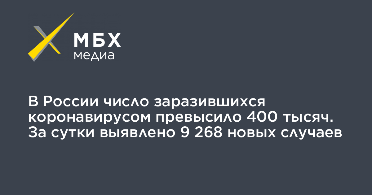 В России число заразившихся коронавирусом превысило 400 тысяч. За сутки выявлено 9 268 новых случаев