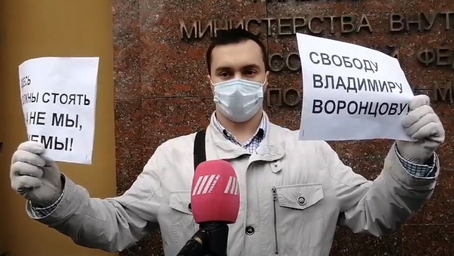 Пикетчик /фото: скриншот из трансляции Sota.Vision