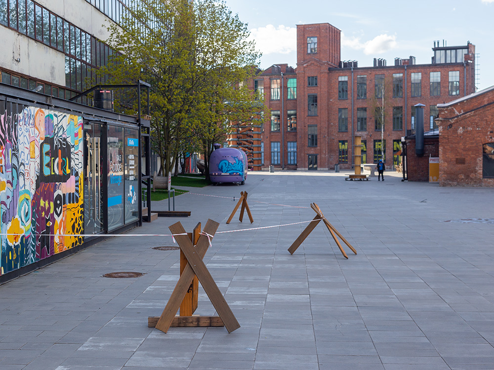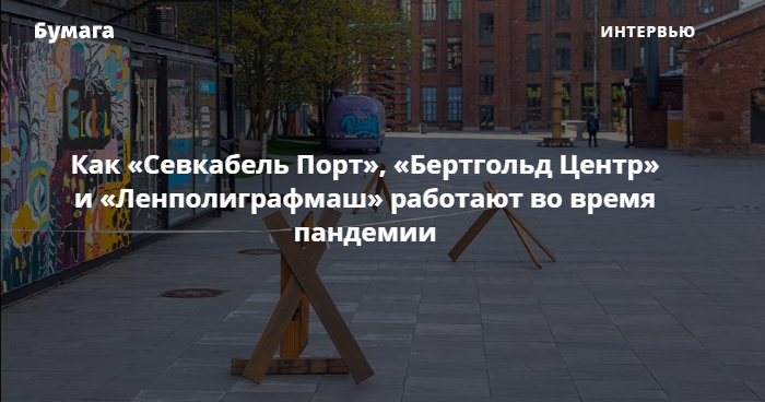 В Петербурге смягчают режим самоизоляции, но рестораны, магазины одежды и креативные пространства всё еще закрыты. «Бумага» показывает фотографии пустующих кластеров и рассказывает, как во время пандемии работают «Севкабель Порт», «Бертгольд Центр» и «Ленполиграфмаш».