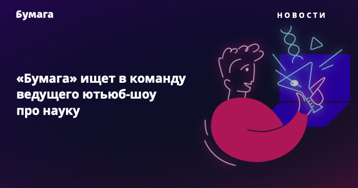 «Бумага» запускает ютьюб-шоу про науку и ищет ведущего или ведущую. В каждом выпуске планируется беседа с ученым в формате посиделок в баре — и веселыми разговорами с вопросами о физике, генетике и других науках.