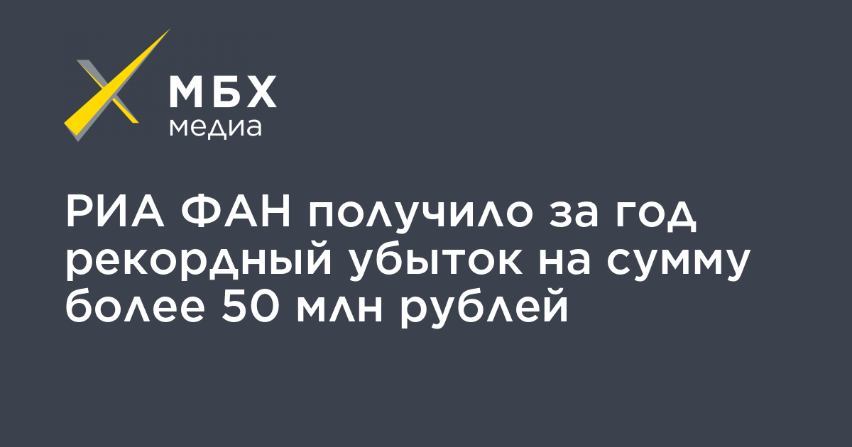 РИА ФАН получило за год рекордный убыток на сумму более 50 млн рублей