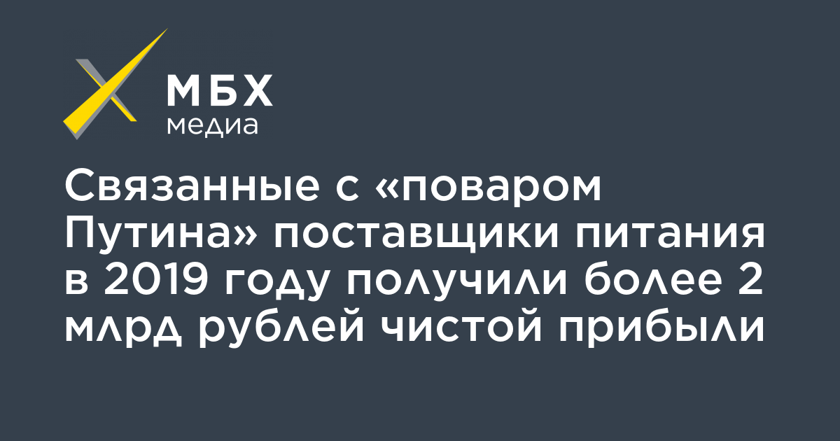 Связанные с бизнесменом Евгением Пригожиным компании, которые занимаются поставками питания в госучреждения, получили более 2 млрд рублей чистой прибыли в 2019 году, подсчитало «МБХ медиа» на основании опубликованной в базе «СПАРК-Интерфакс» финансовой отчетности.