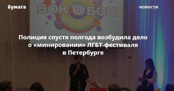 ГУ МВД по Петербургу и Ленобласти возбудило уголовное дело о заведомо ложных сообщениях об актах терроризма на площадках ЛГБТ‑кинофестиваля «Бок о бок». Об этом пишет «Коммерсантъ».