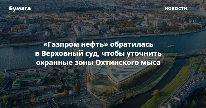 «Газпром нефть» обратилась в Верховный суд, чтобы проверить историко-культурную экспертизу, которая определила охраняемые зоны Охтинского мыса. Об этом сообщает «Коммерсантъ».