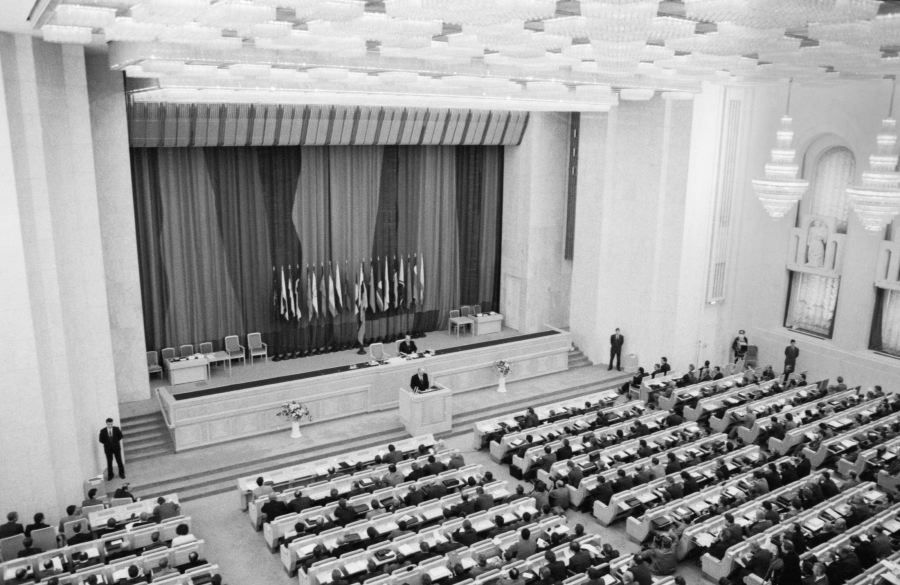 5 июня 1993 г. Во время открытия первого пленарного заседания Конституционного совещания в КремлеФото: Александр Сенцов, Александр Чумичев/ТАСС «В работе совещания принимало участие больше 800 человек, — говорит Илья Константинов. — Это было совсем другое время, эпоха была другая. Даже сторонники Ельцина были довольно демократично настроены. Такую ломовую, грубую подделку, как мы наблюдали сейчас, в то время не приняли бы».