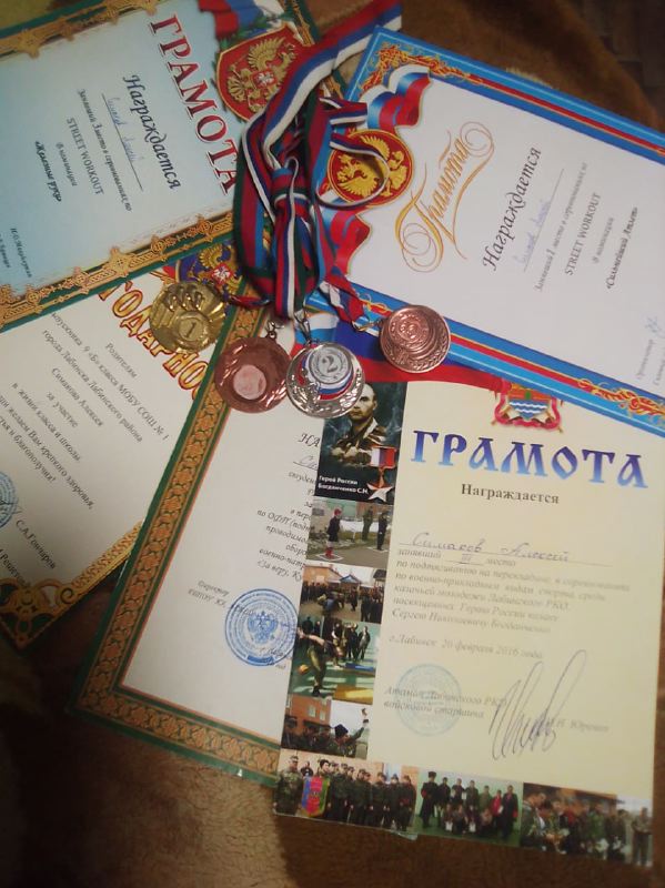 Еще одной страстью парня был спорт: он выступал за город по начальной военной подготовке — Лилия бережно хранит все дипломы и медали, — увлекался уличным спортом — воркаутом, участвовал в движении «Русские выбирают спорт» — бегал с командой ребят по городу с флагами «Мы за спорт», «Мы против наркотиков». «Потом им, правда, запретили бегать, — смеется Лилия. — В общем, к наркотикам он никакого отношения не имел. Не курит, не пьет, другой образ жизни и понятия другие. Даже девушку он выбирал себе, которая не матерится, не пьет и не курит».