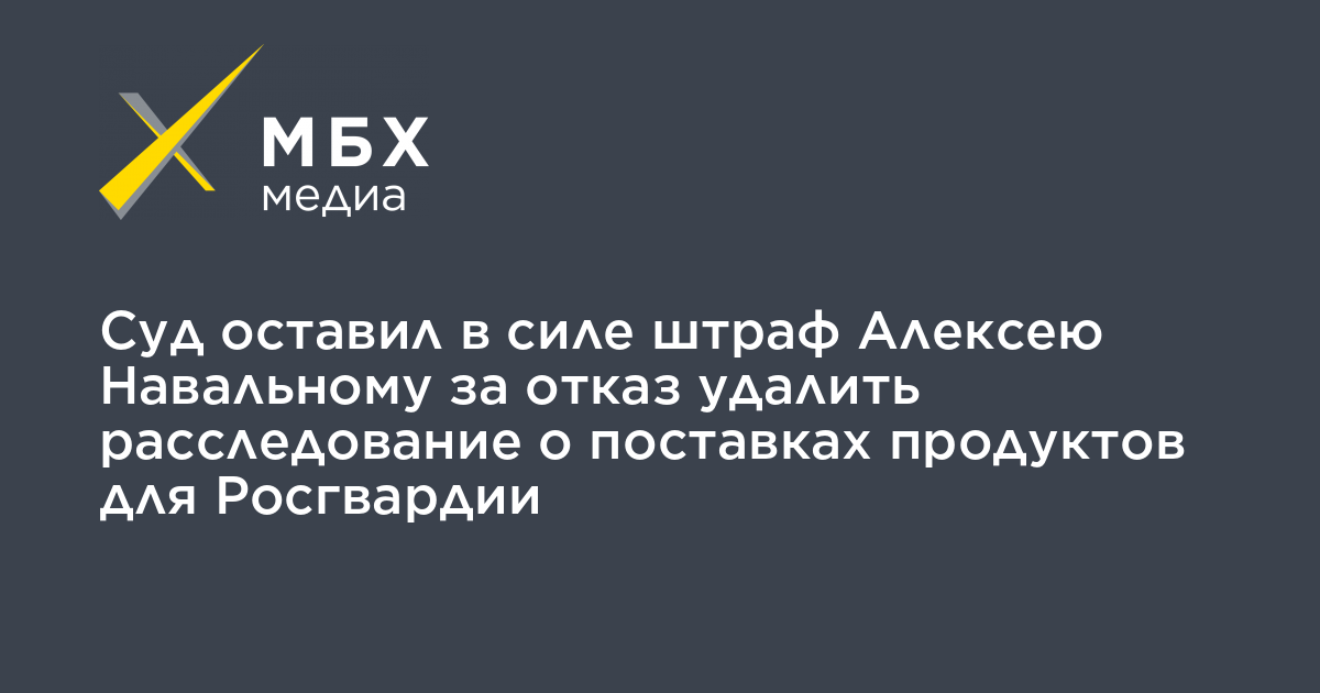 Суд оставил в силе штраф Алексею Навальному за отказ удалить расследование о поставках продуктов для Росгвардии