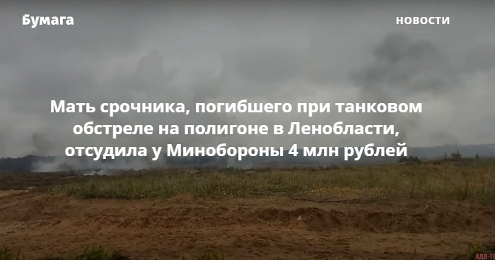 Мать срочника, погибшего на учениях под танковым обстрелом, отсудила у Минобороны 4 млн рублей