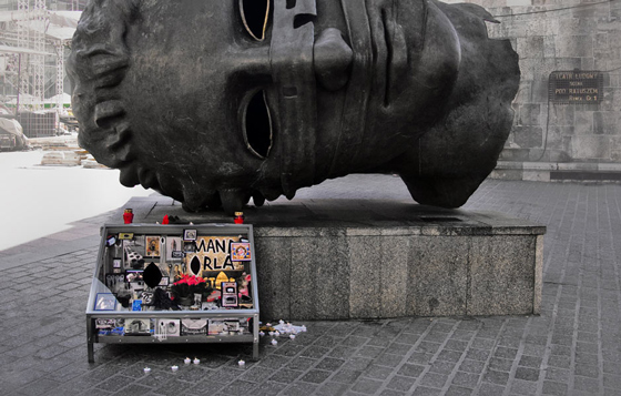 © Сергей Шабохин Из цикла «St()re». «St()re #7: золотая цензура» (2015) Памятник убитому политику Борису Немцову, установленный в Санкт-Петербурге на улице Новороссийская и повторяющий уличный монумент, возникший в Москве на месте убийства политика. Петербургский монумент закрашен золотой краской из баллончика как символ вымарывания исторической памяти в эпоху олигархического капитализма в России. Леденёв: Что касается моих чувств, то нашу беседу я начал с реплик почти исповедальных — в других интервью я никогда подобного не делал. Я помню, что еще в Белостоке мы договорились вести беседу именно подобным образом. Как правило, я стремлюсь задавать емкие и общие вопросы, чтобы разговорить собеседника и позволить читателю составить представление о герое беседы. Дать художнику рассказать о своих работах, истории их создания, любопытных деталях. Записать нечто вроде устной истории — меня привлекает именно такой формат.
