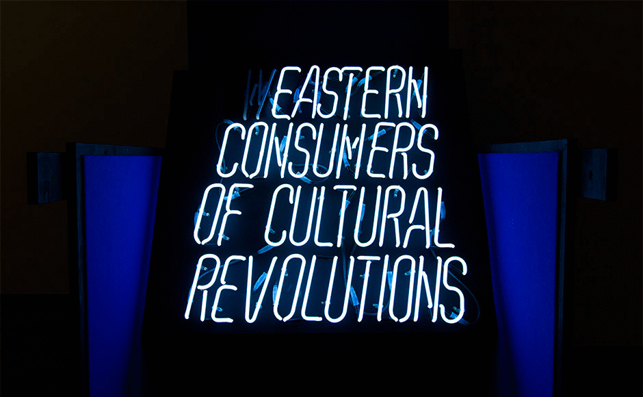Частью проекта стал лозунг на английском языке «We Stern Consumers of Cultural Revolutions», дословно означающий «Мы, суровые потребители культурных революций». Он выложен неоновыми буквами, которые загораются попеременно и образуют игру слов: «Western/Eastern Consumers of Cultural Revolutions» («западные/восточные потребители культурных революций»).