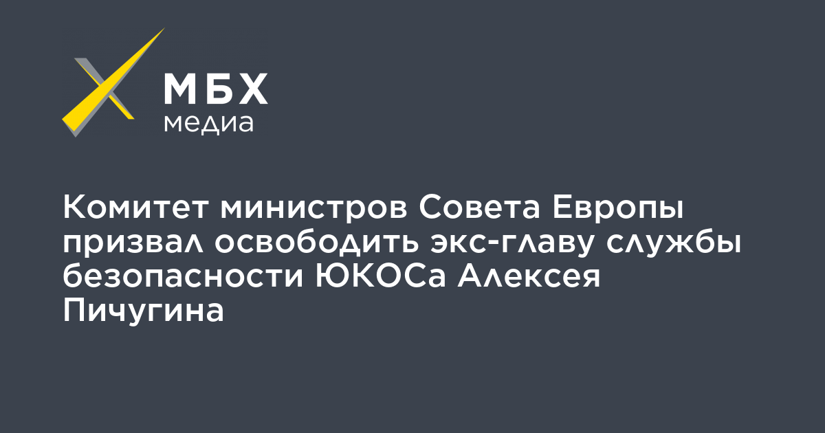 Комитет министров Совета Европы призвал российские власти принять индивидуальные меры, «необходимые для устранения последствий обвинительных приговоров» экс-главе службы безопасности ЮКОСа Алексею Пичугину, то есть провести новый суд или помиловать его. Об этом говорится в резолюции Комитета министров.