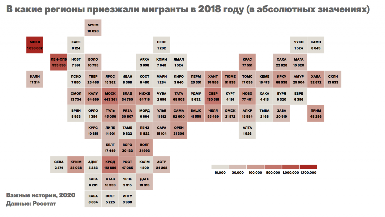 Фото: «Важные истории» Более подробно данные о миграции в России вы можете изучить на сайте проекта «Если быть точным».