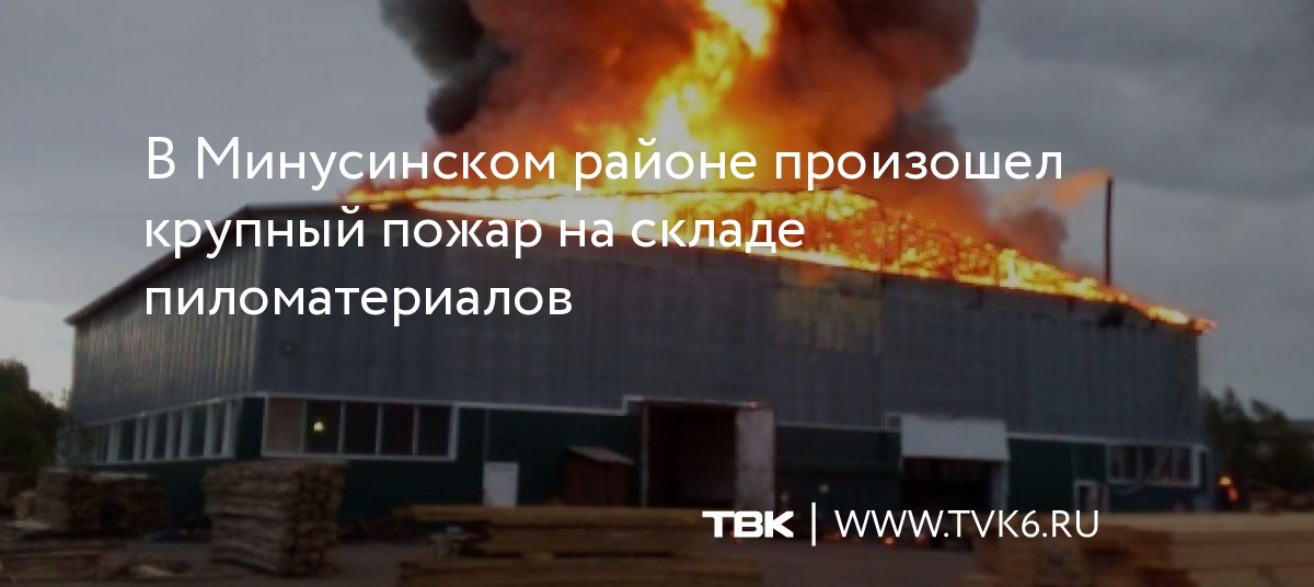 Пожар на складе в Минусинском районе произошел вечером 4 июня. На расположенном в п. Зеленый Бор заводе пиломатериалов загорелась кровля – огонь быстро распространился по всей площади склада.