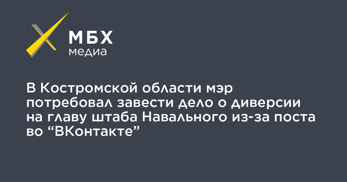 В Костромской области мэр потребовал завести дело о диверсии на главу штаба Навального из-за поста во «ВКонтакте»