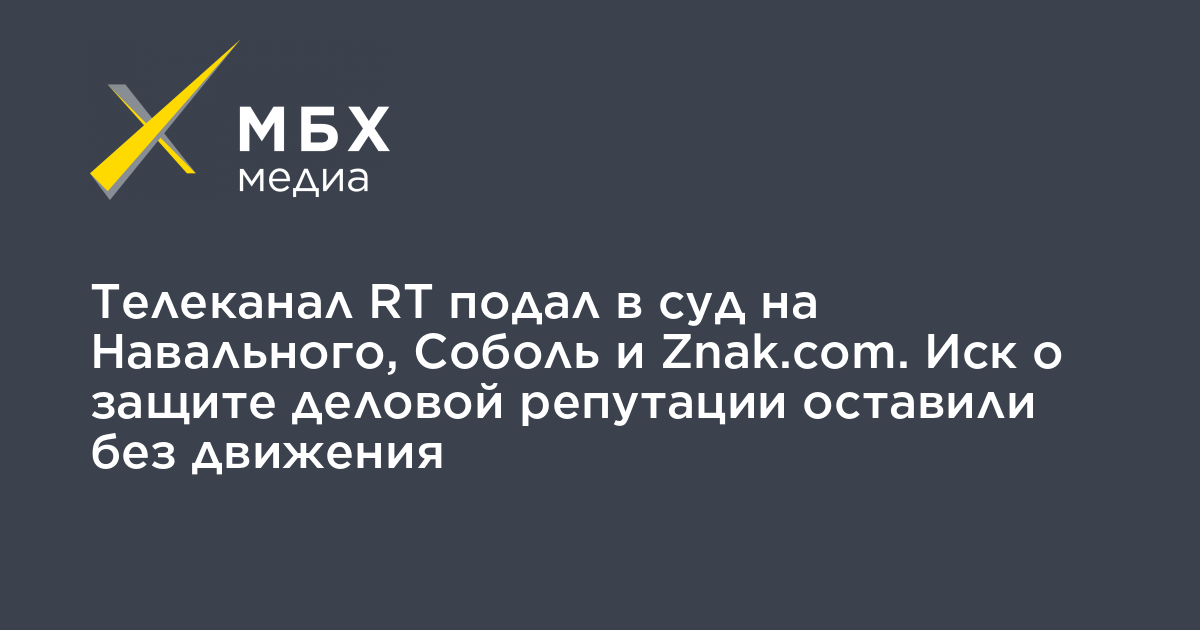 Телеканал RT подал в суд на Навального, Соболь и Znak.com. Иск о защите деловой репутации оставили без движения