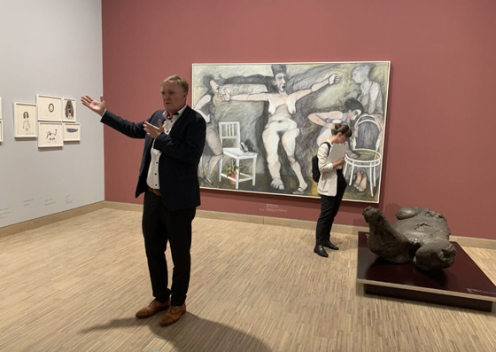 © Андрей Золотов-младший За спиной Клауса Альбрехта Шрёдера — картина Адольфа Фронера (Adolf Frohner (1934–2007)) «Распятие» (1977 г., Альбертина — коллекция Эссль) и скульптура Герды Фассель (Gerda Fassel (*1941)) «Большая лежащая» (1972 г., Венский городской музей) — Как вы убеждаете доноров отдавать вам свои коллекции?