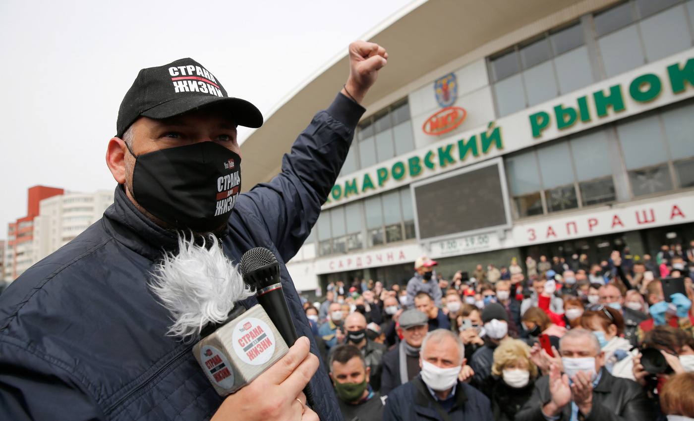Сергей Тихановский на пикете у Комаровского рынка в Минске. Фото: TATYANA ZENKOVICH / EPA / ТАСС