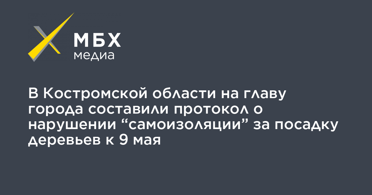 На главу городского округа Буй в Костромской области Валерия Катышева и руководителя администрации Игоря Ральникова составили административные протоколы о нарушении режима «самоизоляции» (часть 2 статьи 6.3 КоАП) из-за акции к 9 мая, когда они вместе с учениками школ высадили в парке несколько деревьев. Об этом сообщил «МБХ медиа» блогер Владислав Дружков, который получил соответствующий ответ от местной прокуратуры.