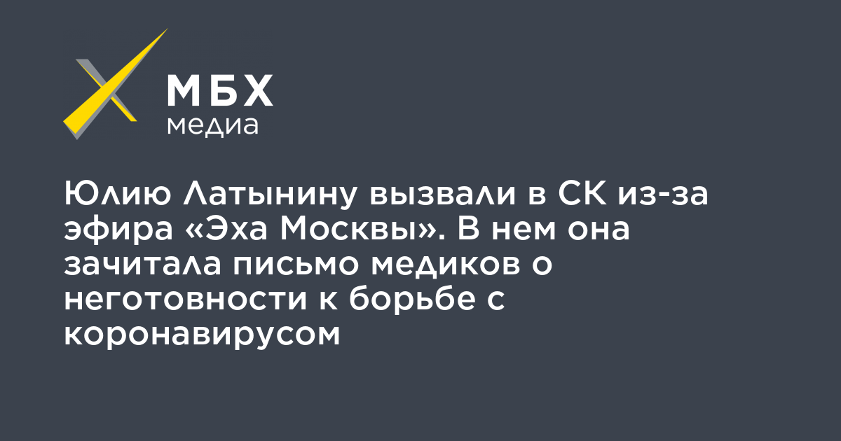 СК призвал редакцию радиостанции «оказать содействие в обеспечении явки» Латыниной в следственный отдел для дачи объяснений, а также попросил сообщить, по какому адресу она соблюдала изоляцию в период действия ограничительных мер.