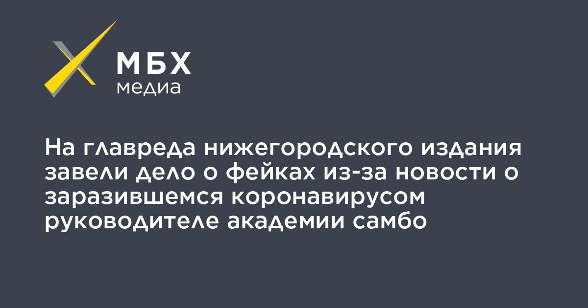 На главреда нижегородского издания завели дело о фейках из-за новости о заразившемся коронавирусом руководителе академии самбо