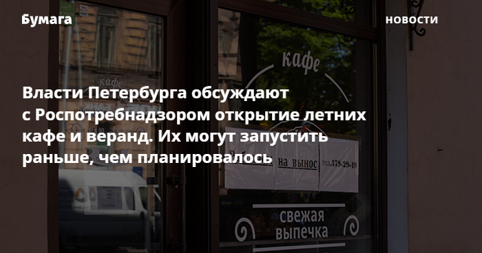 Пресс-служба администрации написала о возможном запуске летних кафе, говоря о втором этапе снятия ограничений. Ранее Беглов заявлял о том, что их запустят лишь на третьем, который запланирован на июль.