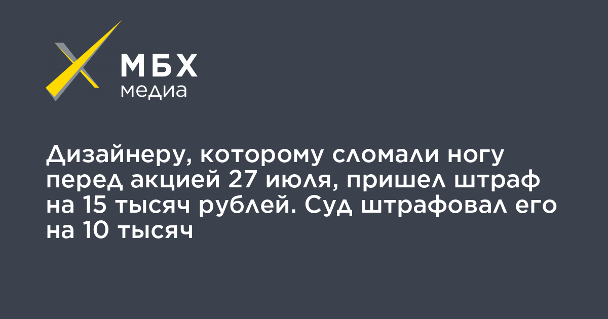 Дизайнеру, которому сломали ногу перед акцией 27 июля, пришел штраф на 15 тысяч рублей. Суд штрафовал его на 10 тысяч