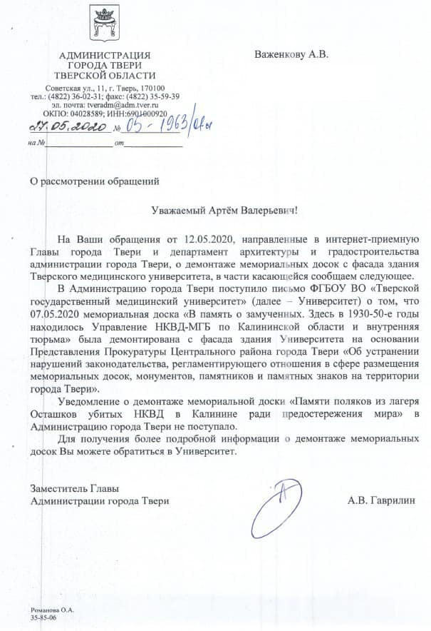 История с демонтажем памятных табличек со здания бывшего НКВД продолжается