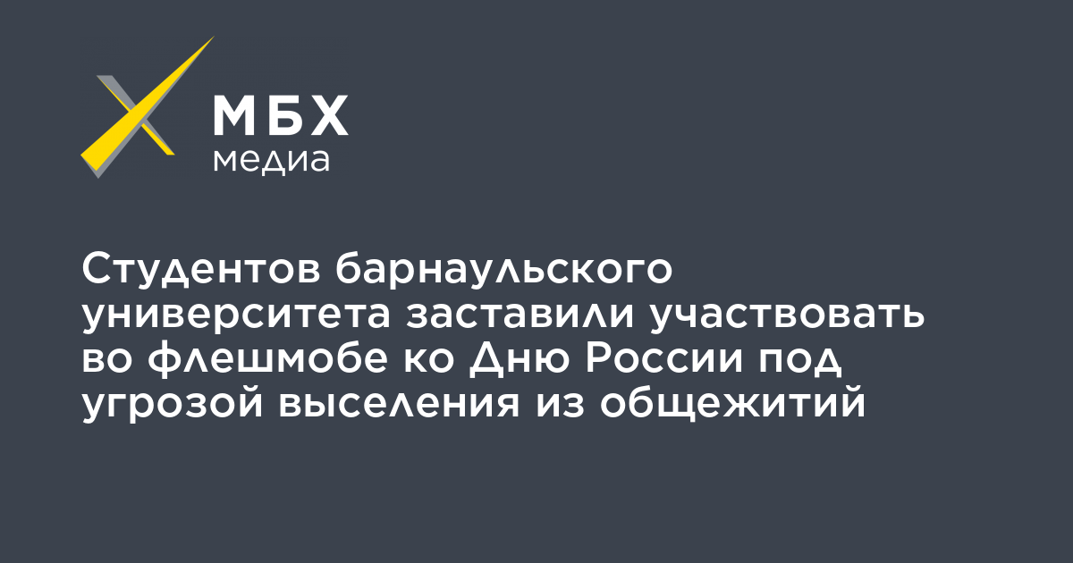 В Барнауле студентов Алтайского государственного университета, проживающих в общежитии вуза, заставили участвовать во флешмобе ко Дню России. Об этом сообщает «Сибирь. МБХ медиа» со ссылкой на студента Якова Веха.