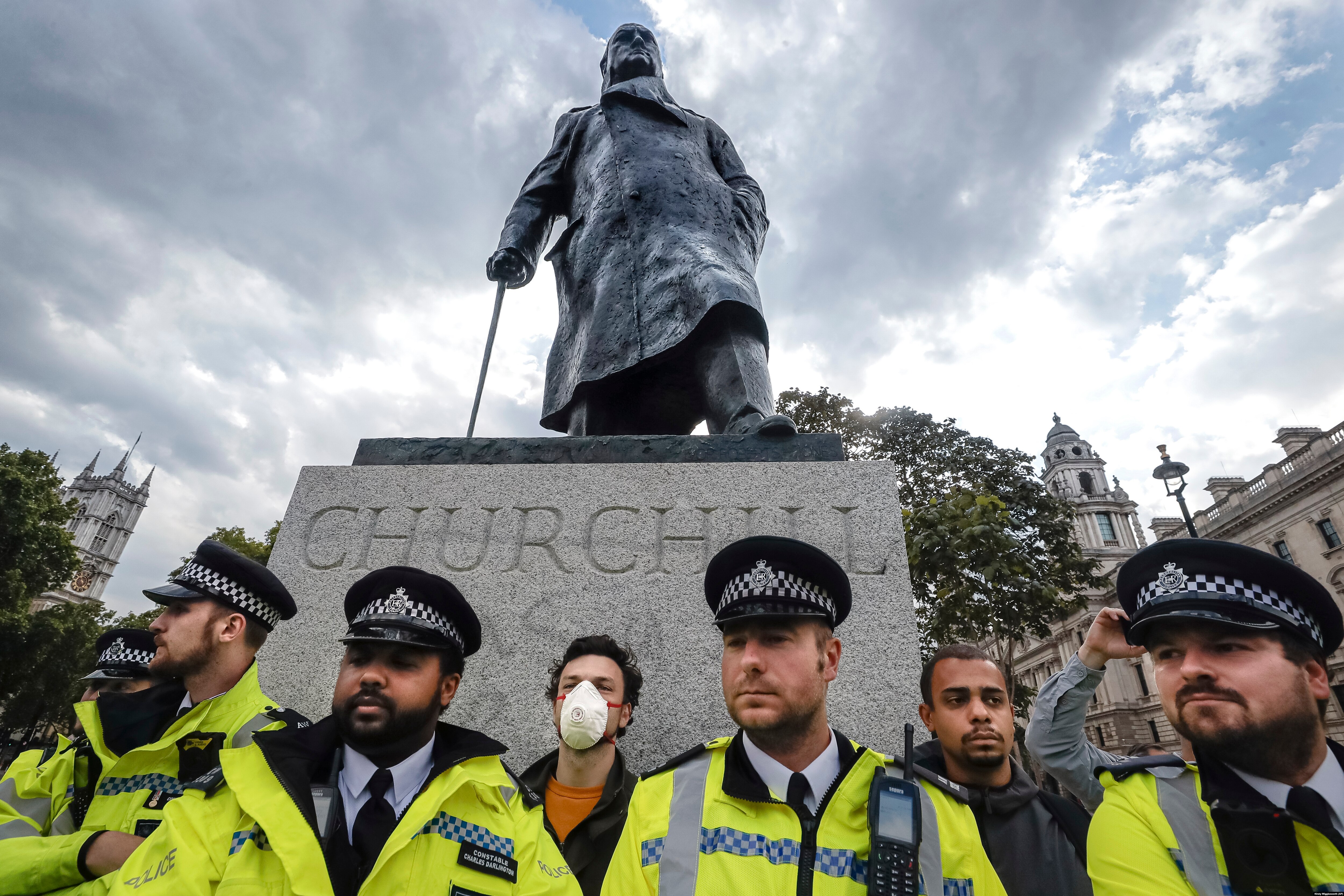 Перед намеченными на ближайшие дни новыми протестами статую Черчилля закрыли защитным экраном.