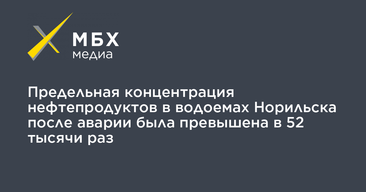 «Из разных мест после аварии было взято 16 проб донных отложений, 35 проб грунта и 250 проб воды из реки Амбарной. По результатам анализа проб было зафиксировано превышение ПДК у правого берега в 52 тыс. раз, у левого — в 866 раз», — сказал собеседник агентства.