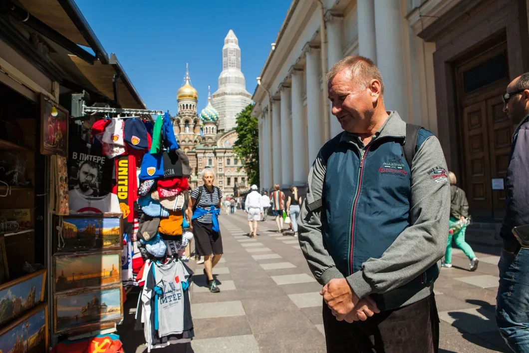 Я почти всю жизнь дальнобойщиком работаю. У меня все знакомые путешествуют, а тут ты тоже путешествуешь, но за это еще и деньги платят. Люблю рассматривать картины, вот и пришел к сувенирам у канала Грибоедова. В Петербург приезжаю с 90-х годов. С работой во время коронавируса проблем нет, нас дальнобойщиков не трогают.