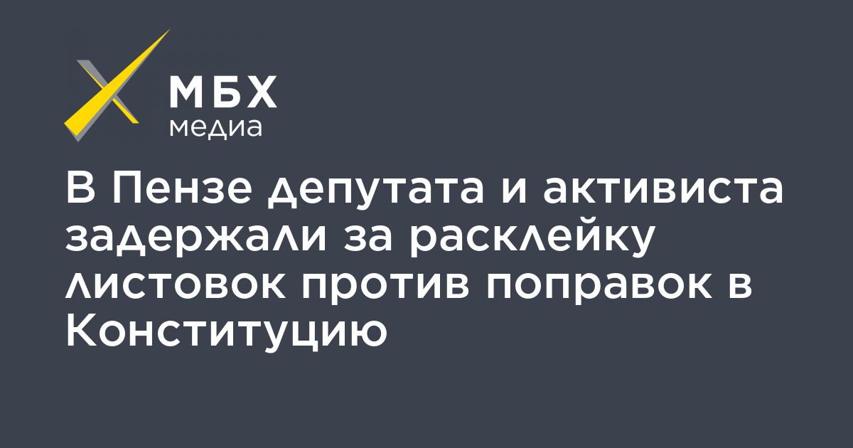 В Пензе депутата городской думы Александра Рогожкина и члена ЛКСМ Александра Ермакова задержали за расклейку листовок против поправок в Конституцию. Об этом сообщает ОВД-инфо.