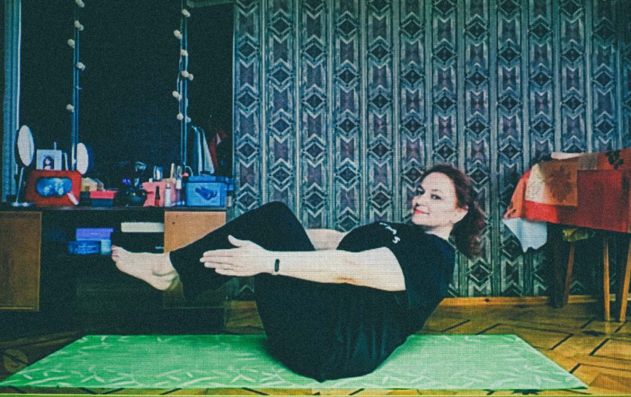 «Сели на коврик — это уже первое упражнение. А, простите, второе. Первое упражнение — это когда мы расстелили коврик. Классно, да? Только проснулись, а уже сделали два упражнения! А теперь соедините пальцы в замок и потянитесь вверх. Ничего не надо делать, вообще ничего! Просто сидите».