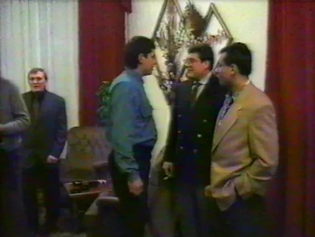 Вот Челентано в дверях встречает гостей. Входят назаровцы — вскоре одного из них, Скоробогатова, убьют (как утверждал 20 лет назад Татаренков, по приказу Быкова), а остальных в начале нулевых пересажают шить варежки. Из деревни ребята — сразу видно. Их земляки, включая Быкова и тех, кто с ним в Красноярске с начала 90-х, одеты уже совершенно иначе, они в Америке побывали, костюмы им там пошили, зубы сделали. На самом Челентано уже не желтый пиджак и туфли у него «козырные». Вот только дерганный он какой-то, навязчивые непроизвольные подергивания плечами, сокращения спинных мышц.