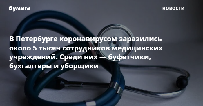 «Случаи заражения коронавирусом за время пандемии подтвердили у 5 тысяч сотрудников медицинских учреждений Петербурга. Сотрудники не равно медработники. В цифру 5000 включены и буфетчики, и уборщики, и бухгалтеры, и статистики, и компьютерщики. В эту цифру входят и поликлиники, и стационары и федеральные учреждения», — сказала пресс-секретарь комитета Ольга Рябинина.