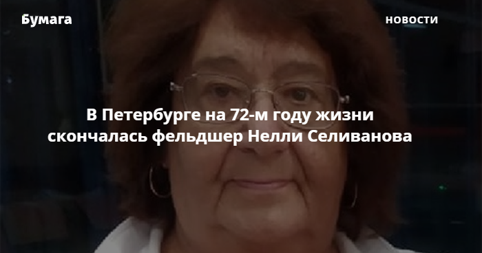 В Петербурге скончалась фельдшер Нелли Селиванова