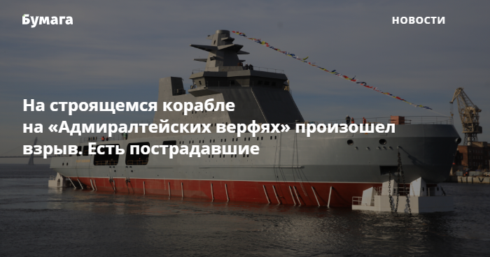 По данным пресс-службы, в закрытом помещении на корабле взорвался газ, пожара не было. В «Адмиралтейских верфях» говорят, что пострадал один человек, детали происшествия выясняются.