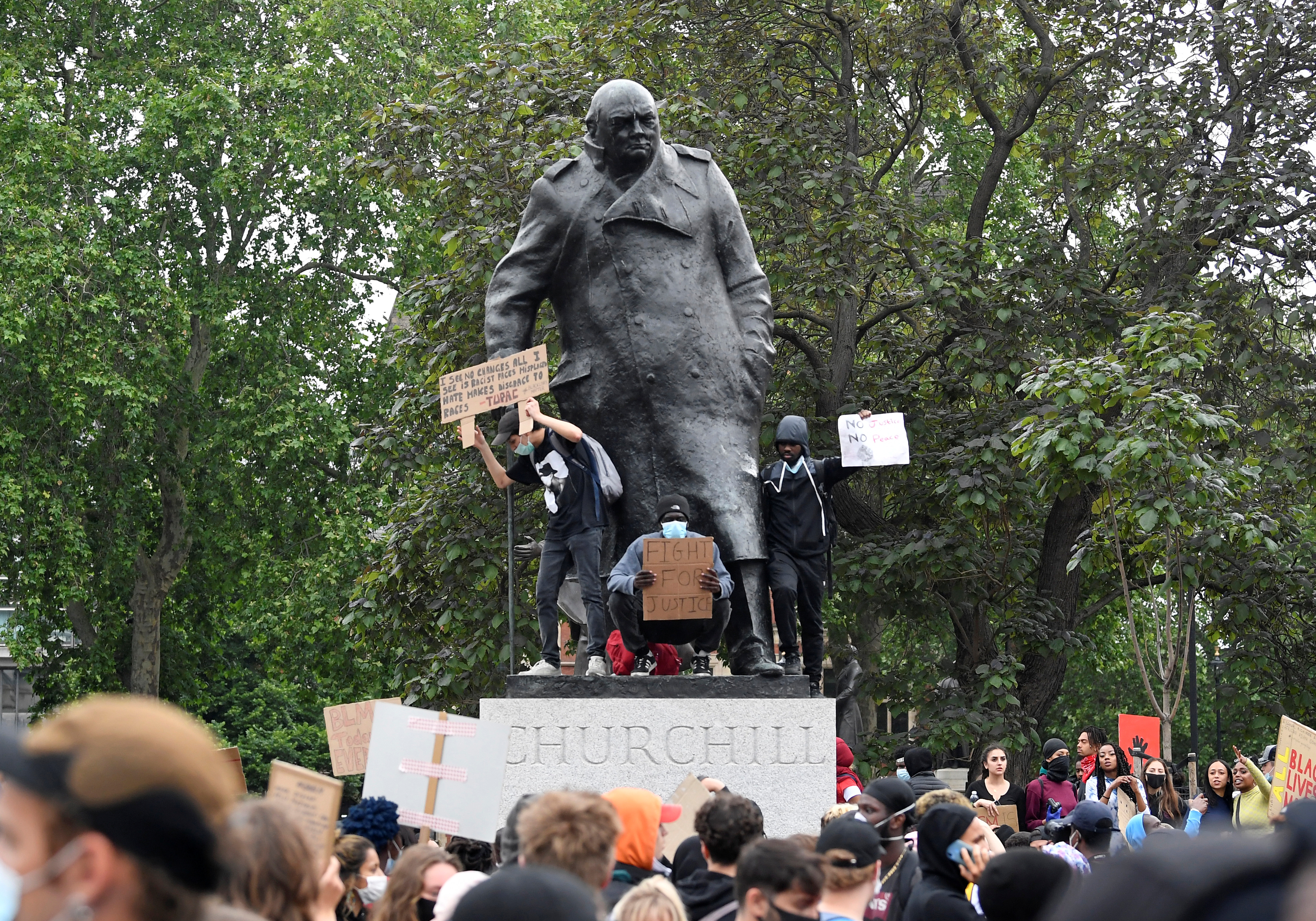 Официальных требований демонтировать памятник Черчиллю не выдвигалось, однако в ходе одной из демонстраций под лозунгом "Жизни чернокожих имеют значение" (Black Lives Matter) на его постаменте написали: "Он был расистом". Это вызвало живую дискуссию в соцсетях, в ходе которой ряд пользователей напомнил о высказываниях бывшего премьера, которые можно интерпретировать как расистские.