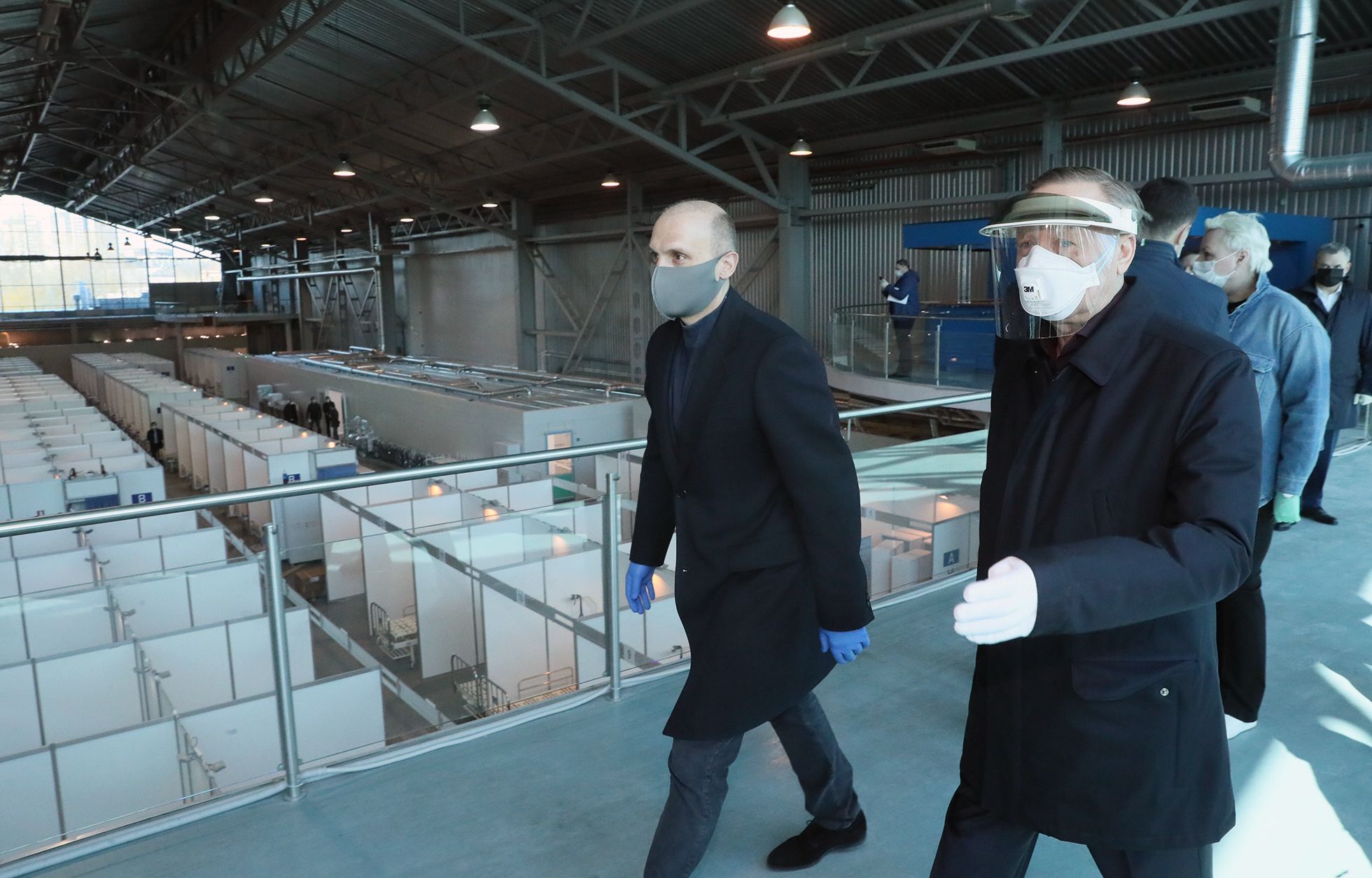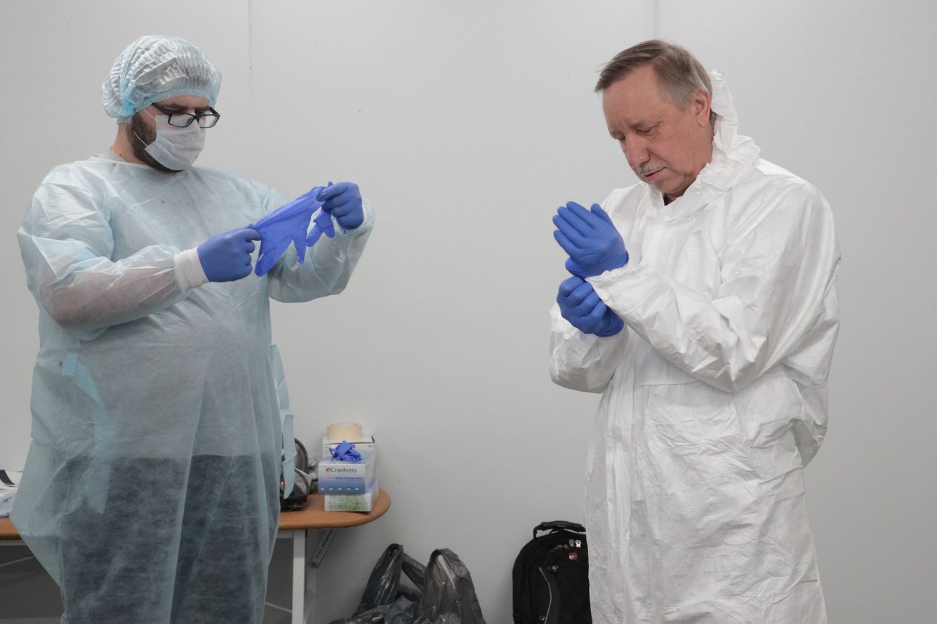 Приезжал Беглов и в другие медучреждения — несколько поездок закончились конфузом. Встречавшие губернатора медики в одном из городских роддомов были защищены только маской и перчатками, но сам Беглов надел респиратор, а поверх него еще и щиток. Такой вид губернатора стал поводом для мемов. А через два дня после визита Беглова роддом закрылся на прием новых пациентов: у одной из пациенток обнаружили коронавирусную инфекцию. Разошлись по блогам и фотографии Беглова в госпитале «Ленэкспо».